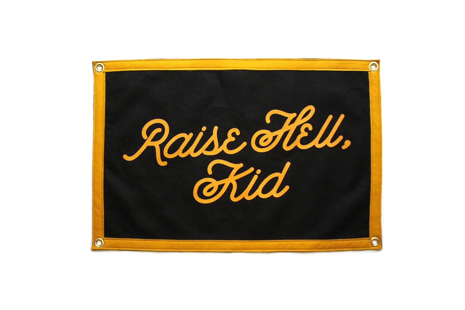 Orné d'une inscription d'inspiration vintage, ce drapeau de camp vous invite à laisser votre empreinte sur le monde. Confectionné en feutre de laine de haute qualité.