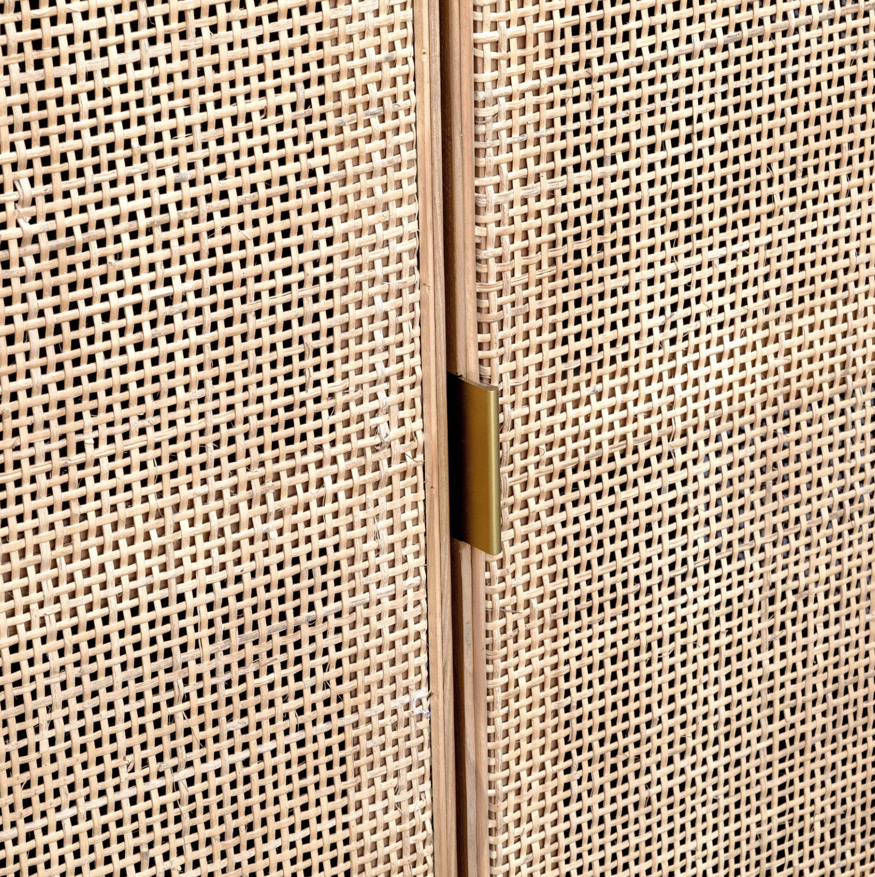 Fabriqué en chêne et placage chêne, ce buffet est doté de portes et de côtés en osier véritable, apportant une touche rustique à votre salon, entrée ou salle à manger. Avec ses quatre espaces de rangement et ses portes d'armoire faciles à ouvrir, c'est un meuble polyvalent et pratique pour votre intérieur.