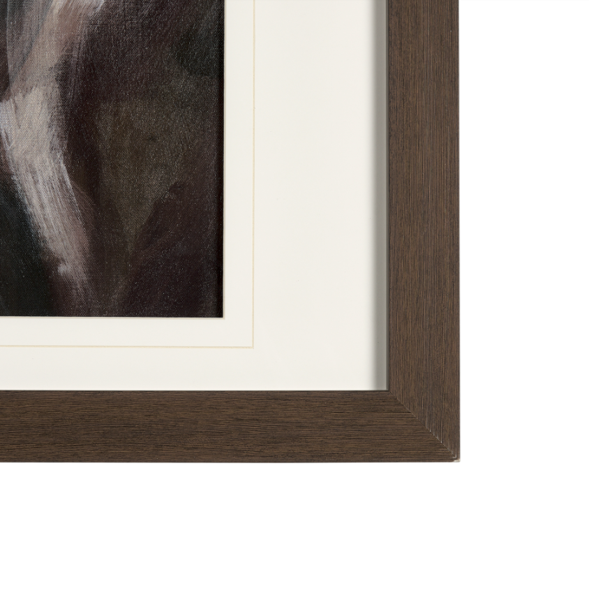 Cette estampe présente une superbe représentation abstraite de chevaux au galop, dans une palette de teintes neutres et sombres, incluant le noir, le brun et le gris. Elle est livrée sous passe-partout et encadrée, apportant une touche d'élégance à tout intérieur.