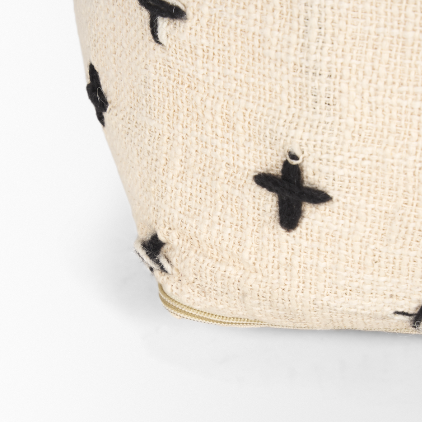 Confectionné en laine couleur crème ornée de ravissants motifs croisés, le pouf carré Saanvi est tissé à la main et garni de billes de mousse moelleuses. Son design polyvalent offre à la fois texture et confort, faisant de lui une assise élégante ou un repose-pieds pratique.