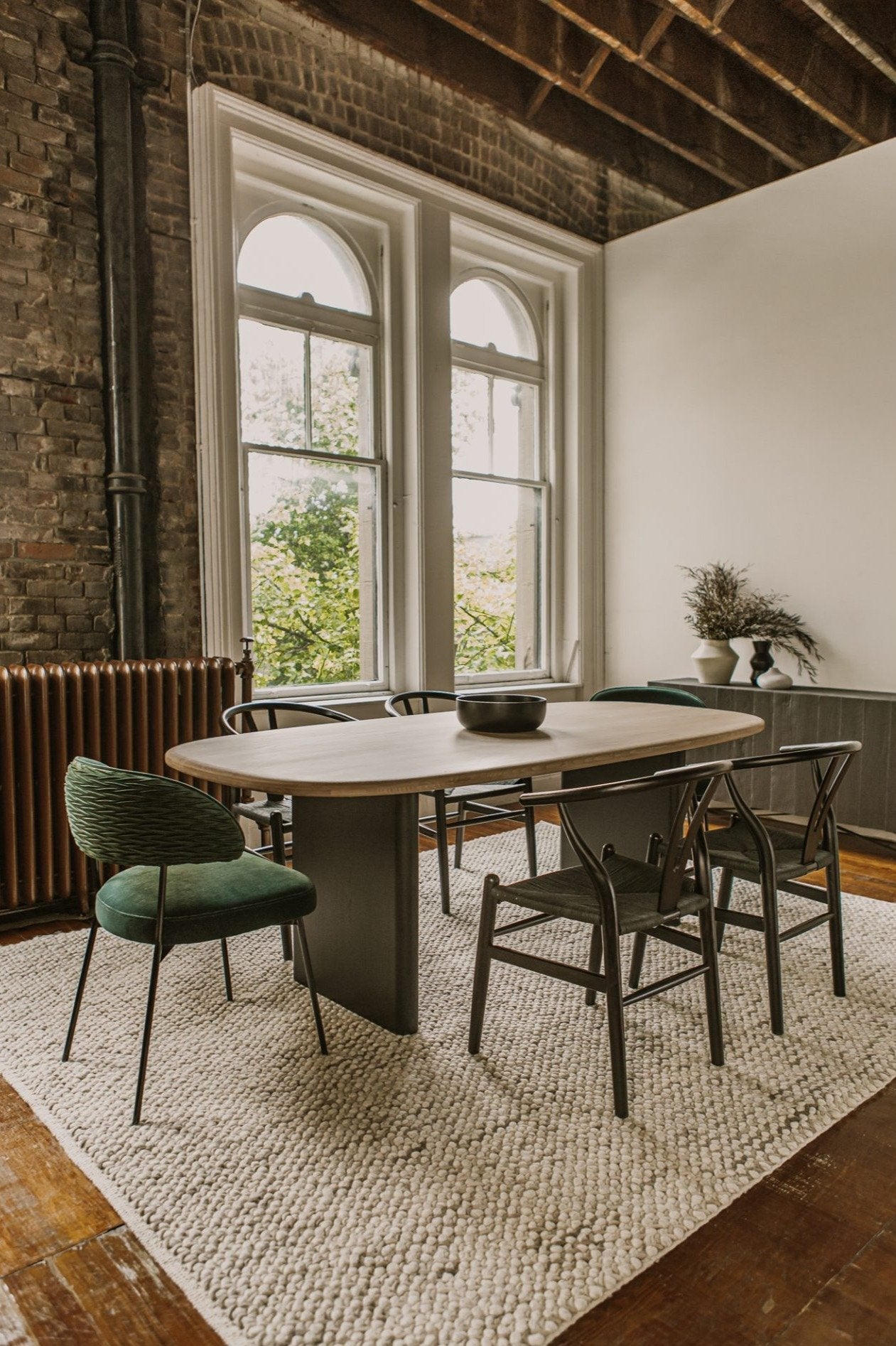 Avec ses lignes douces et son contraste saisissant, la table à manger Sakurai incarne le design contemporain à son apogée. Fabriquée en frêne massif, cette table est non seulement magnifique, mais aussi extrêmement résistante.