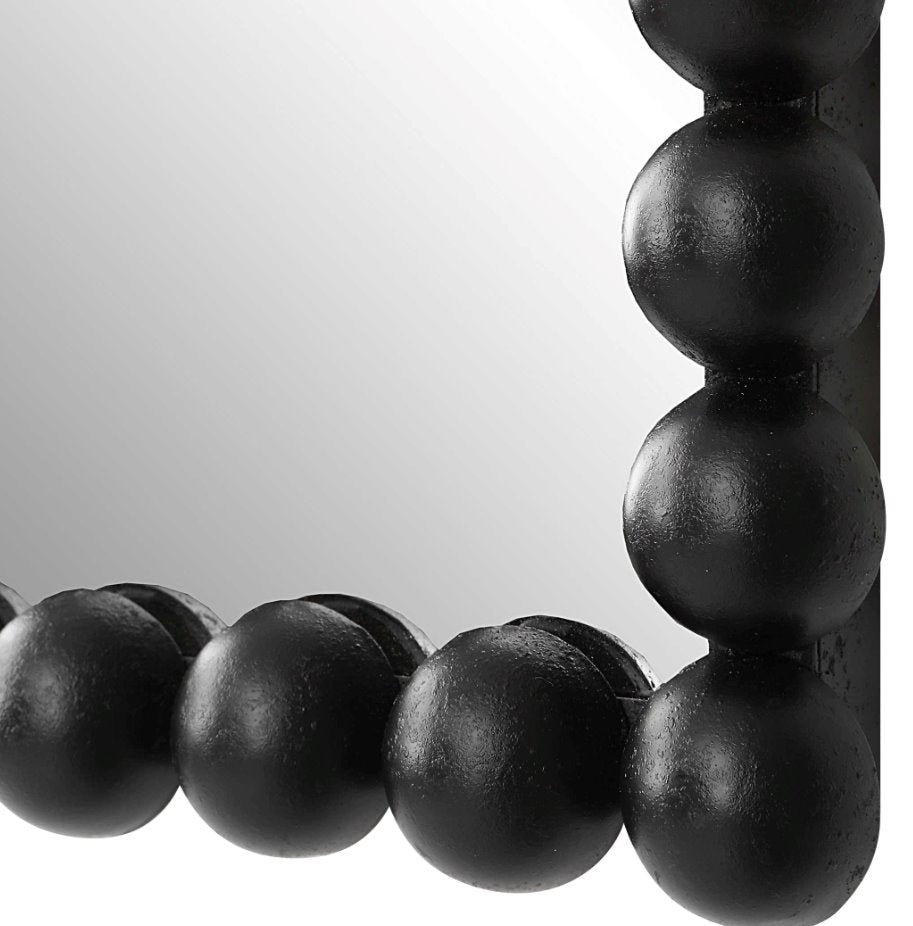 Le miroir Serna est un modèle classique revisité : son cadre en fer présente un profil perlé et une élégante finition noire satinée. Il peut être accroché horizontalement ou verticalement.