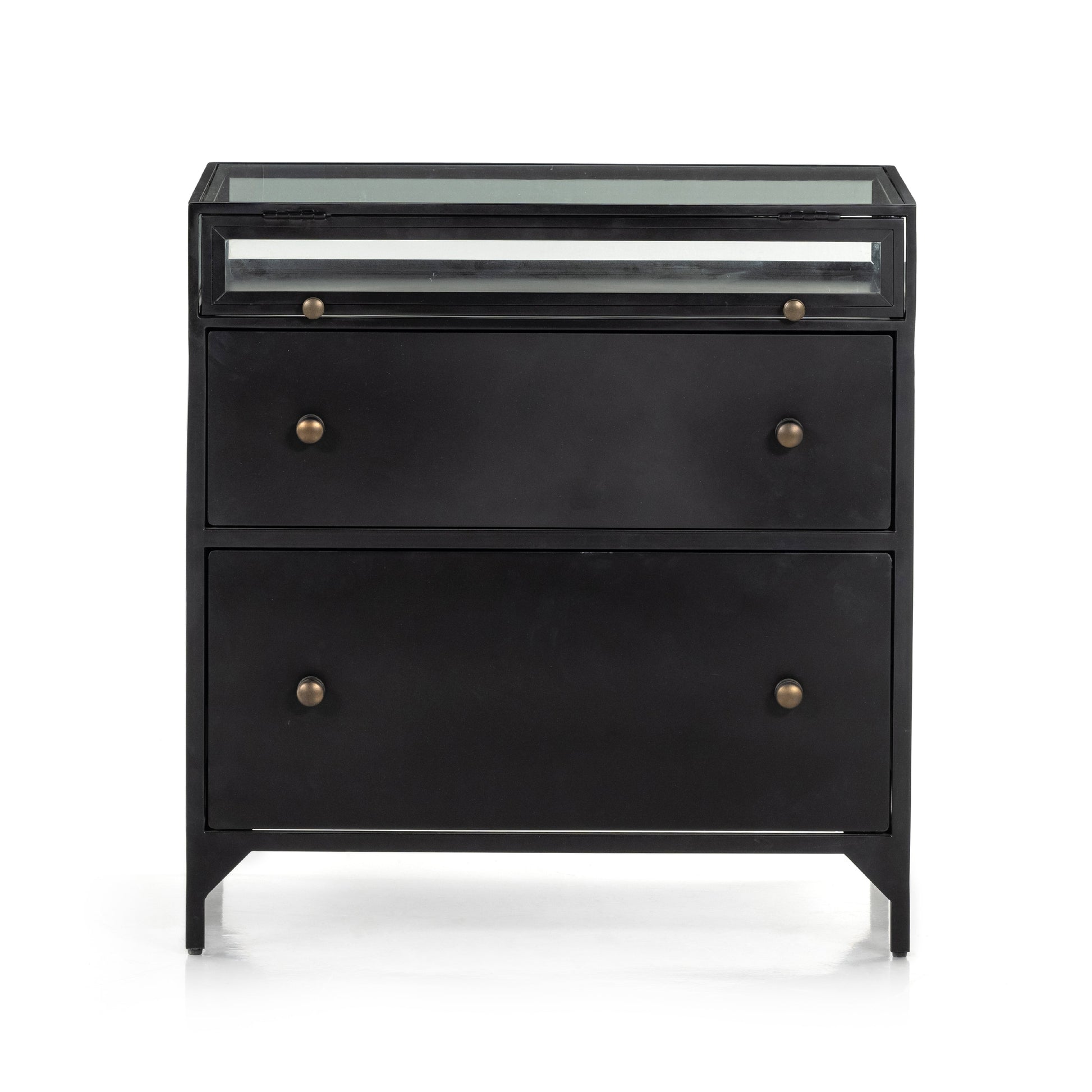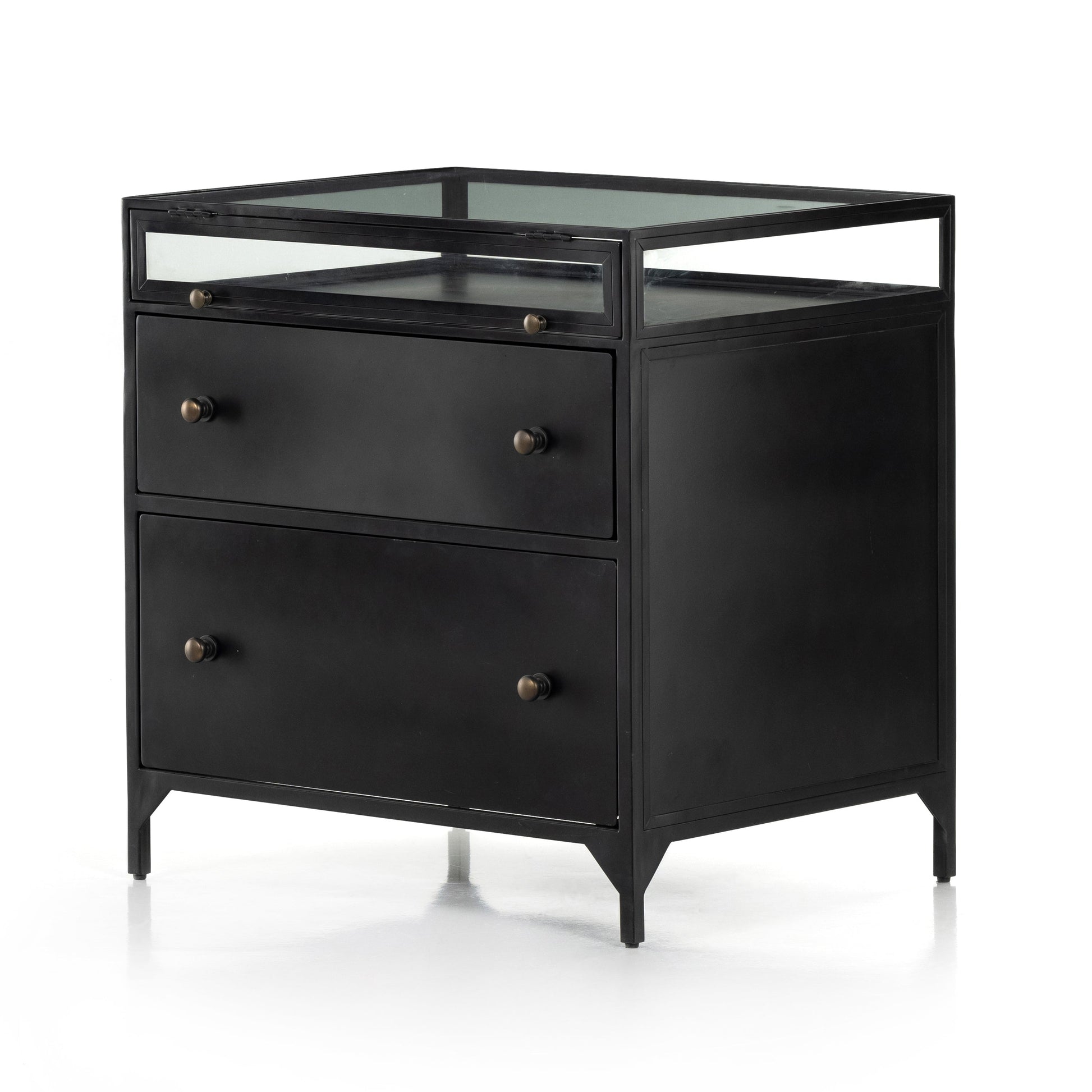 Un bureau de style vitrine allie travail et loisirs. Exposez vos objets précieux dans un écrin de verre aux poignées en fer finition canon de fusil et laiton. S'accorde parfaitement avec le bureau assorti.