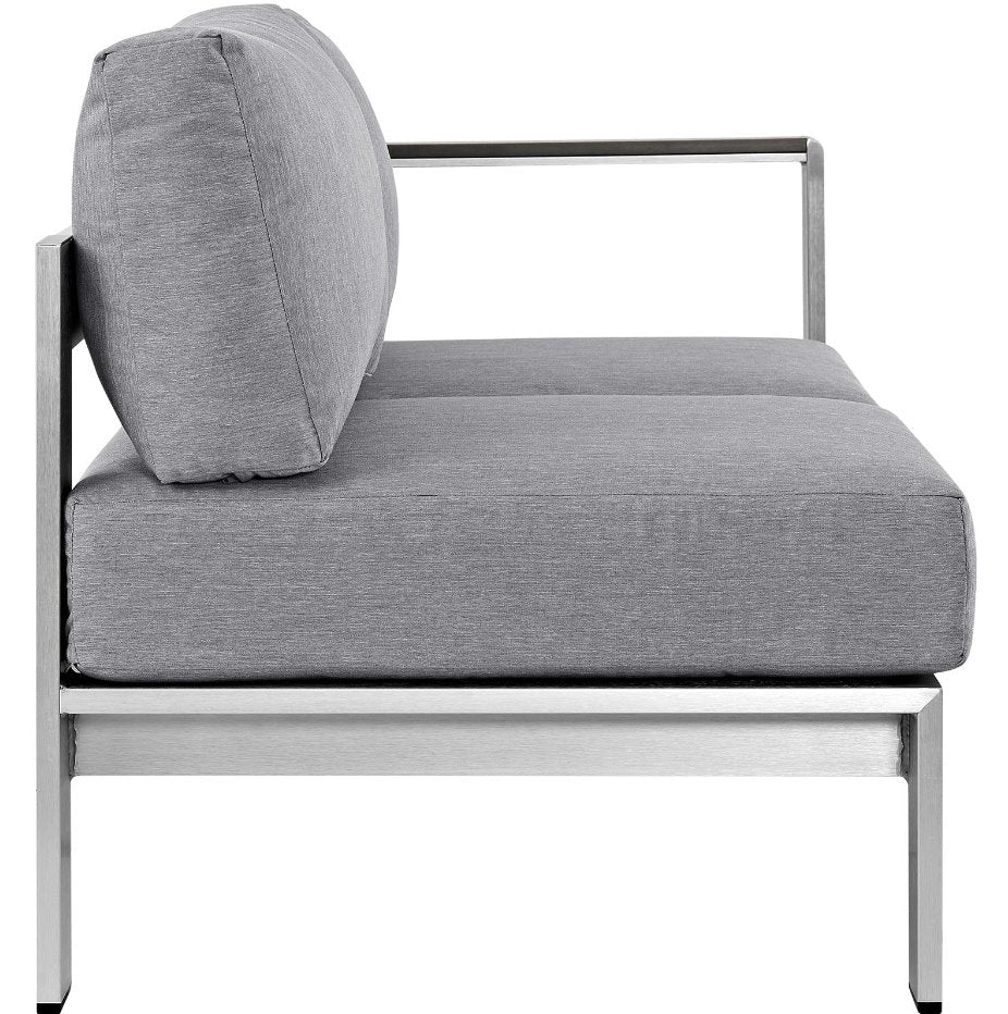 Le canapé deux places d'extérieur Shore est fabriqué avec une structure en aluminium brossé anodisé et des embouts de pieds en plastique noir non marquants. Il est revêtu d'une toile résistante, conçue pour affronter toutes les conditions climatiques. Ce canapé deux places apportera une touche d'élégance et de fonctionnalité à vos moments de détente en extérieur.