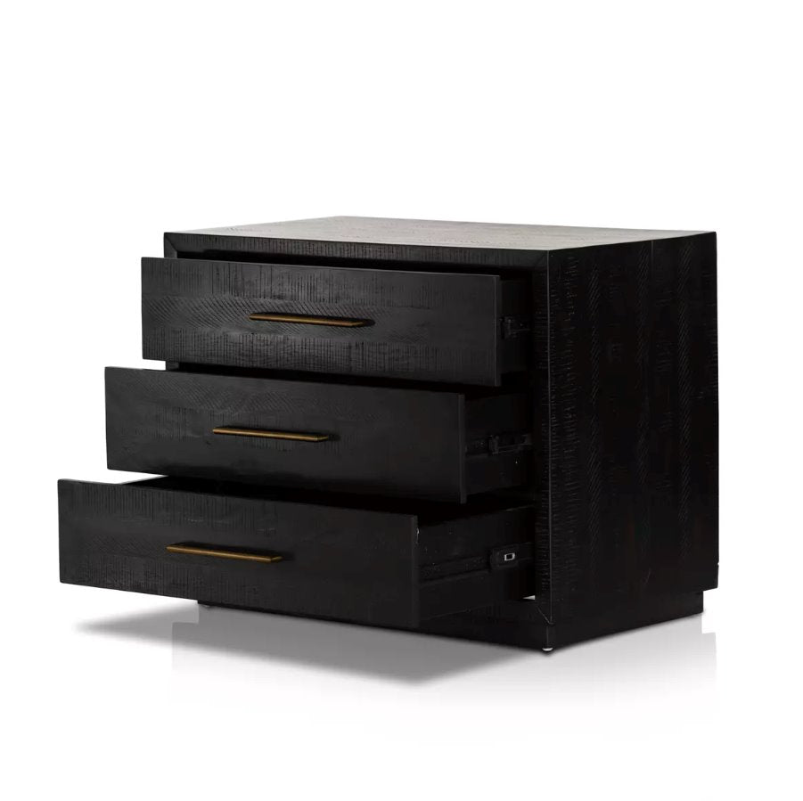 Cette table de chevet au design soigné apporte une touche d'élégance à votre chambre tout en offrant un espace de rangement pratique pour vos objets du quotidien. Sa finition noire épurée s'harmonise avec différents styles de décoration, ce qui en fait un meuble polyvalent pour votre espace.