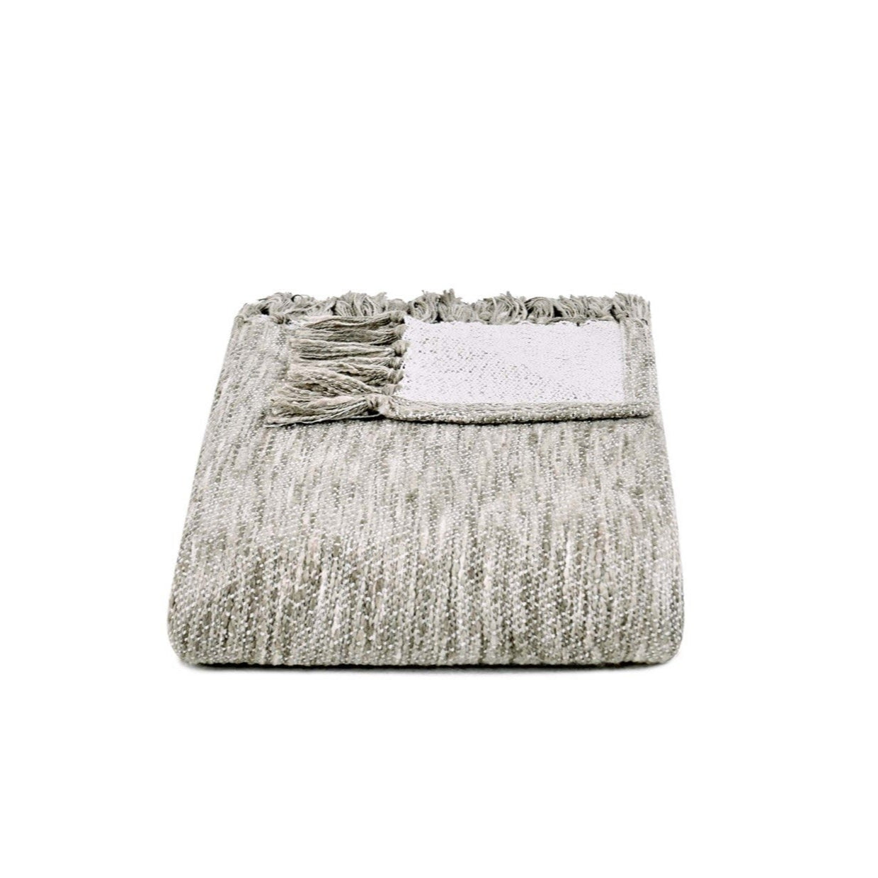 Arborant une palette de gris neutre ou de vert cèdre, les pompons noués à la main à l'ourlet de ce plaid tissé chiné lui confèrent une touche d'élégance. Ce plaid surdimensionné est conçu pour être polyvalent et réversible, ce qui en fait un choix idéal pour tous les espaces.