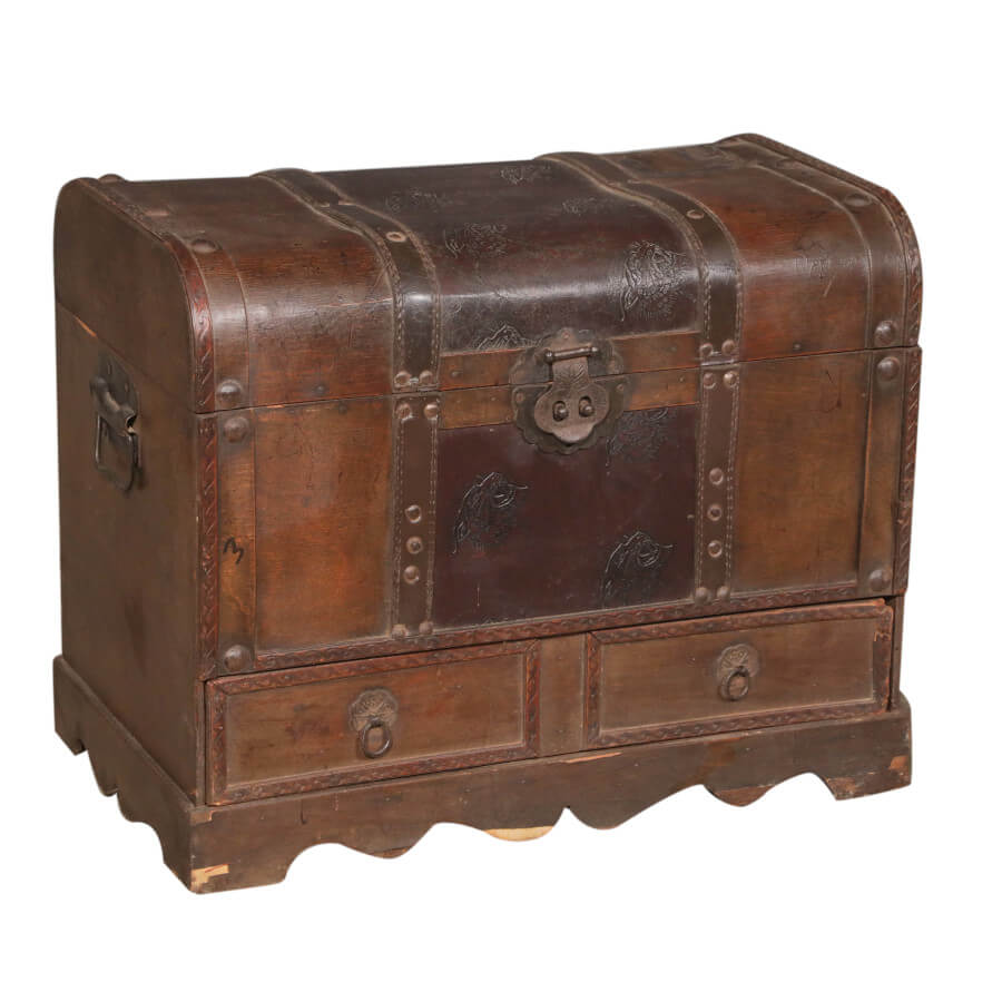 Coffre en teck avec finitions en cuir