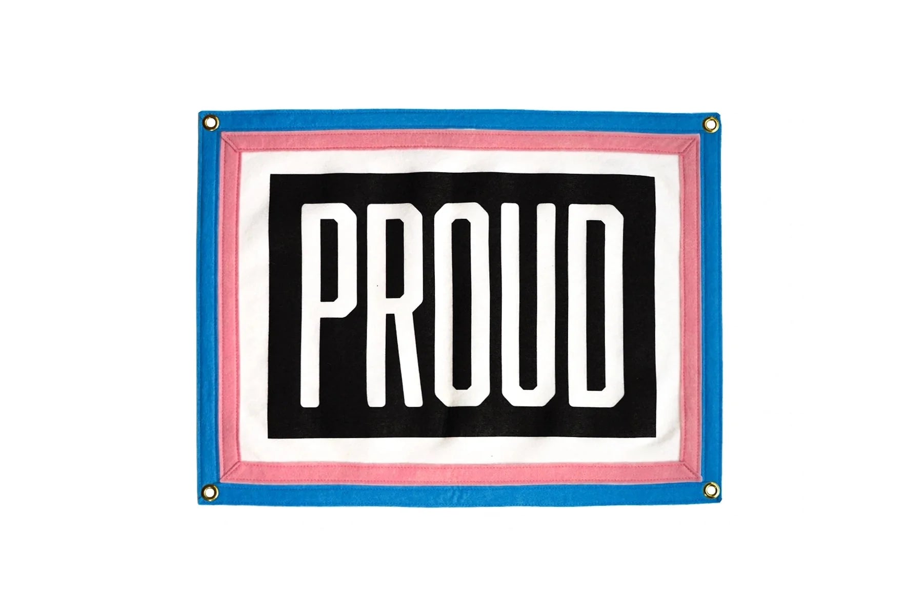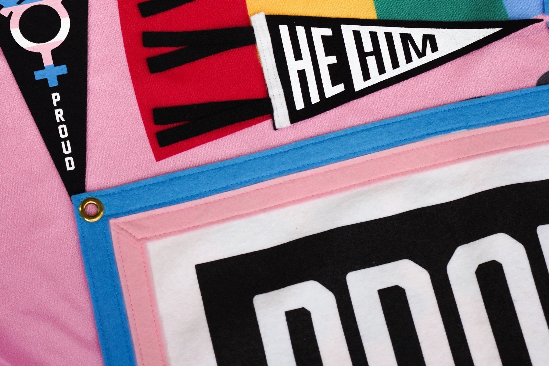 Affichez votre fierté avec ce drapeau de camp noir, blanc, rose et bleu. Confectionné en feutre de laine de haute qualité.