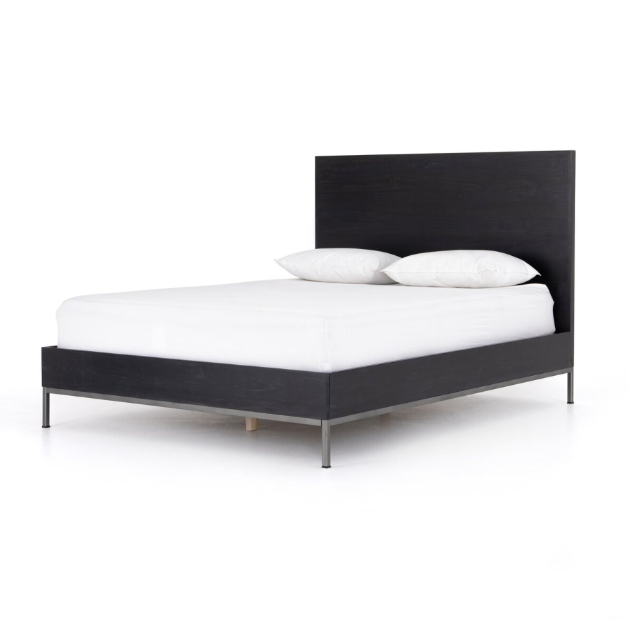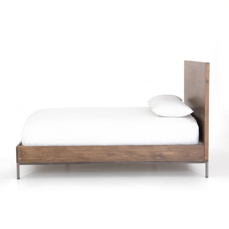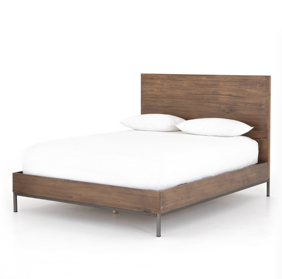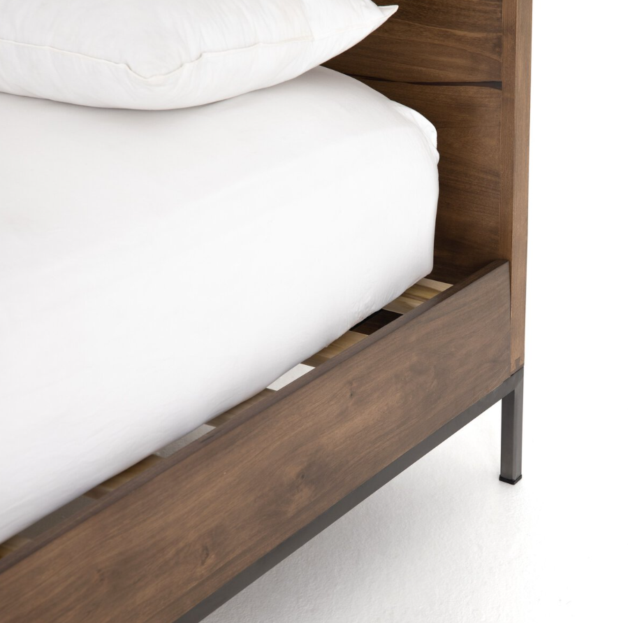 Conçu avec une influence du design du milieu du siècle, le lit Trey est un élégant lit plateforme en bois proposé en finitions auburn et noire, offrant un style intemporel.