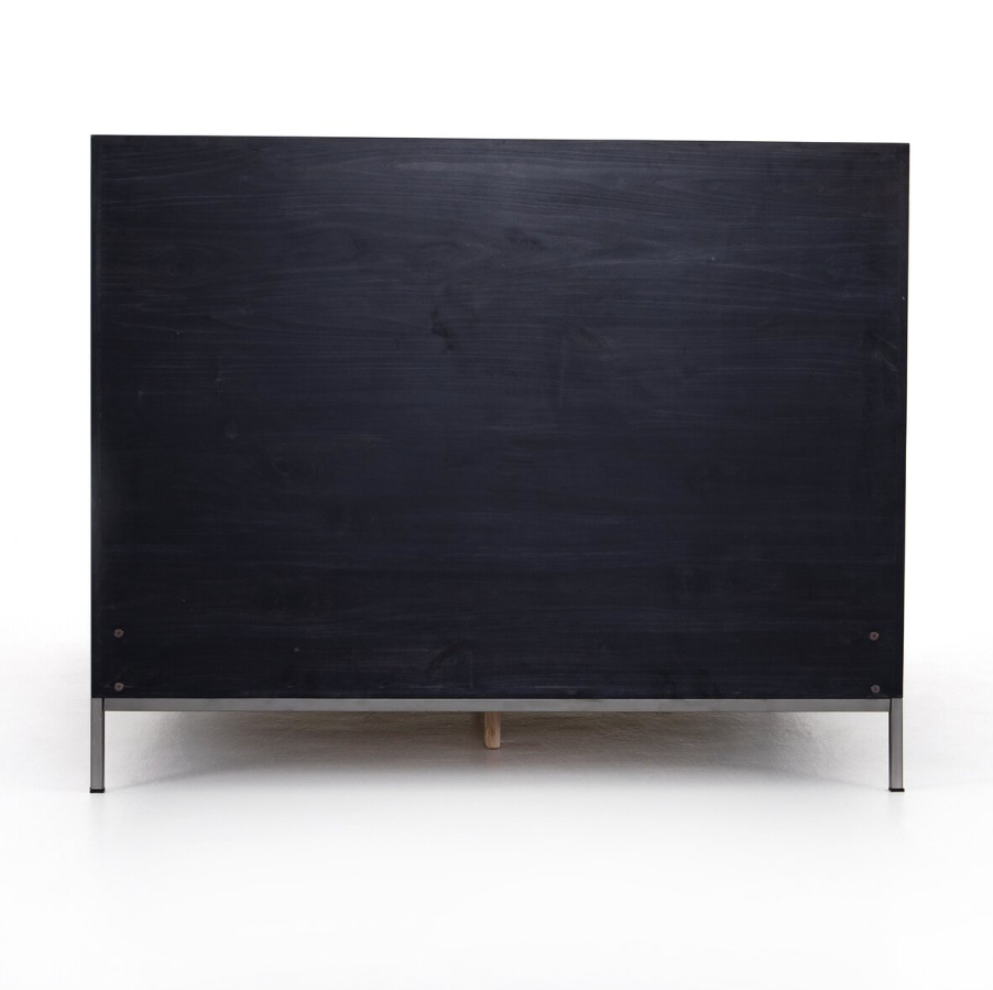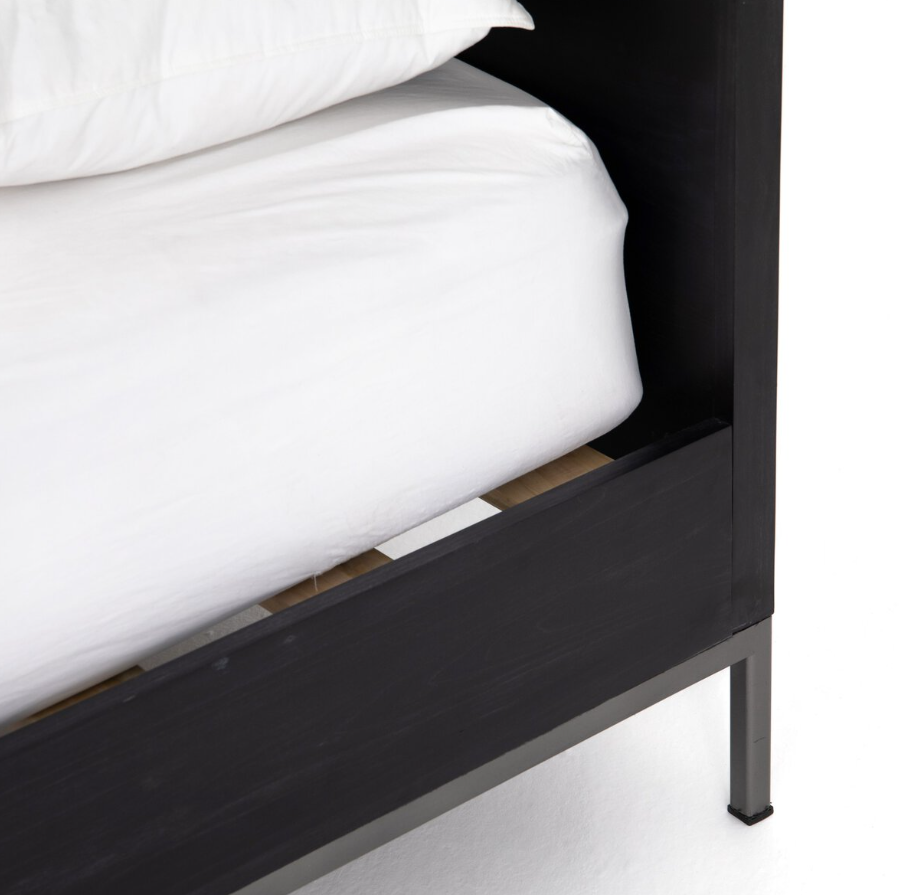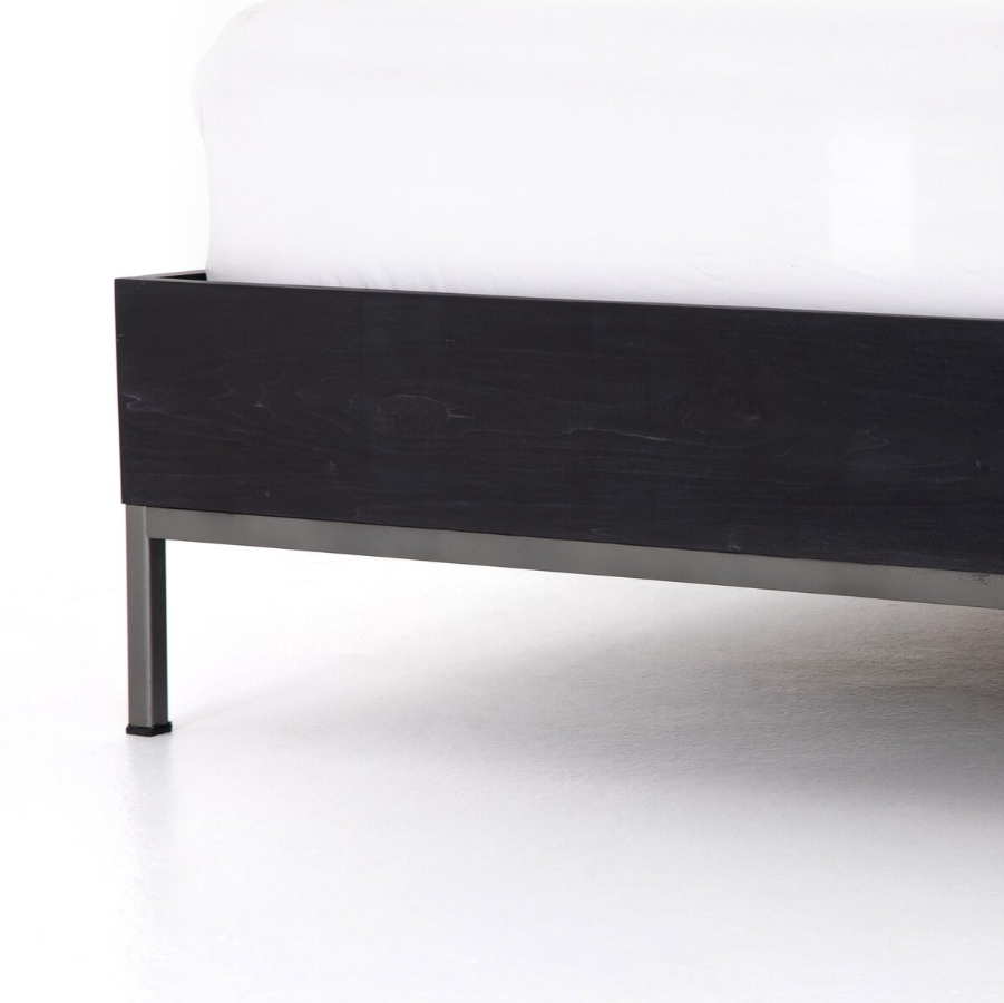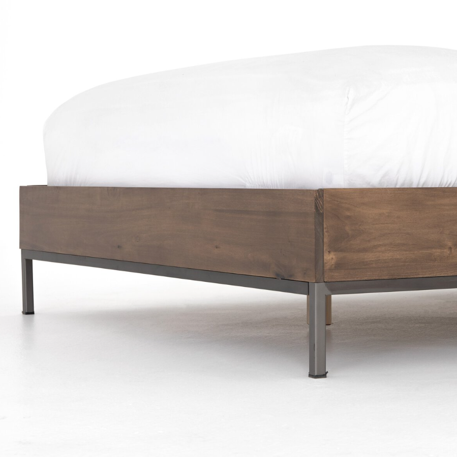 Conçu avec une influence du design du milieu du siècle, le lit Trey est un élégant lit plateforme en bois proposé en finitions auburn et noire, offrant un style intemporel.