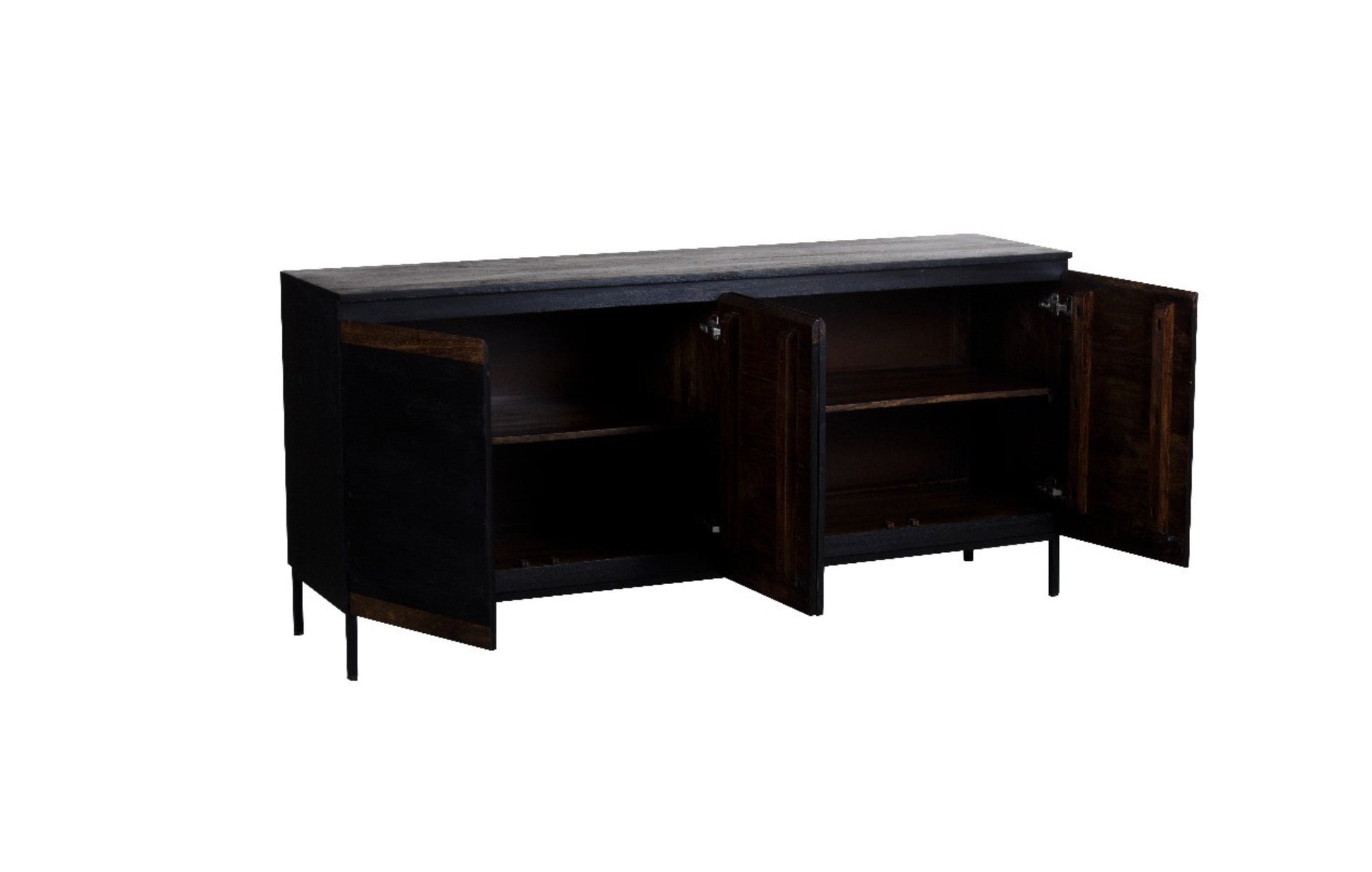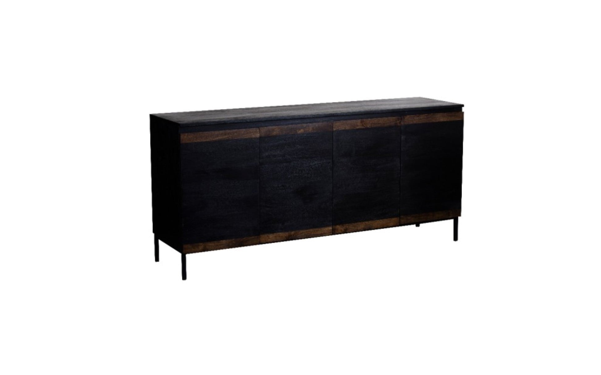 Fabriqué en bois de manguier robuste, le buffet Udo présente une finition brossée du plus bel effet, dans un mélange captivant de brun et de noir.