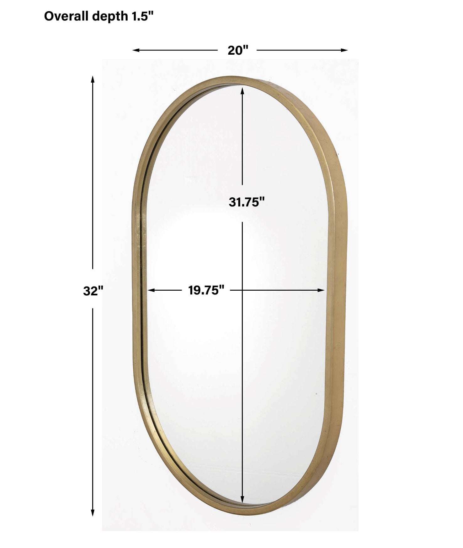 Ce miroir ovale en fer présente une finition dorée à l'ancienne subtilement patinée et des motifs linéaires. Il peut être accroché à l'horizontale ou à la verticale.