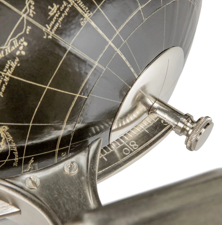 Inspiré d'un globe datant des années 1700, réalisé par la célèbre famille de cartographes Vaugondy, ce globe antique reproduit fidèlement les détails et présente une grande finesse.