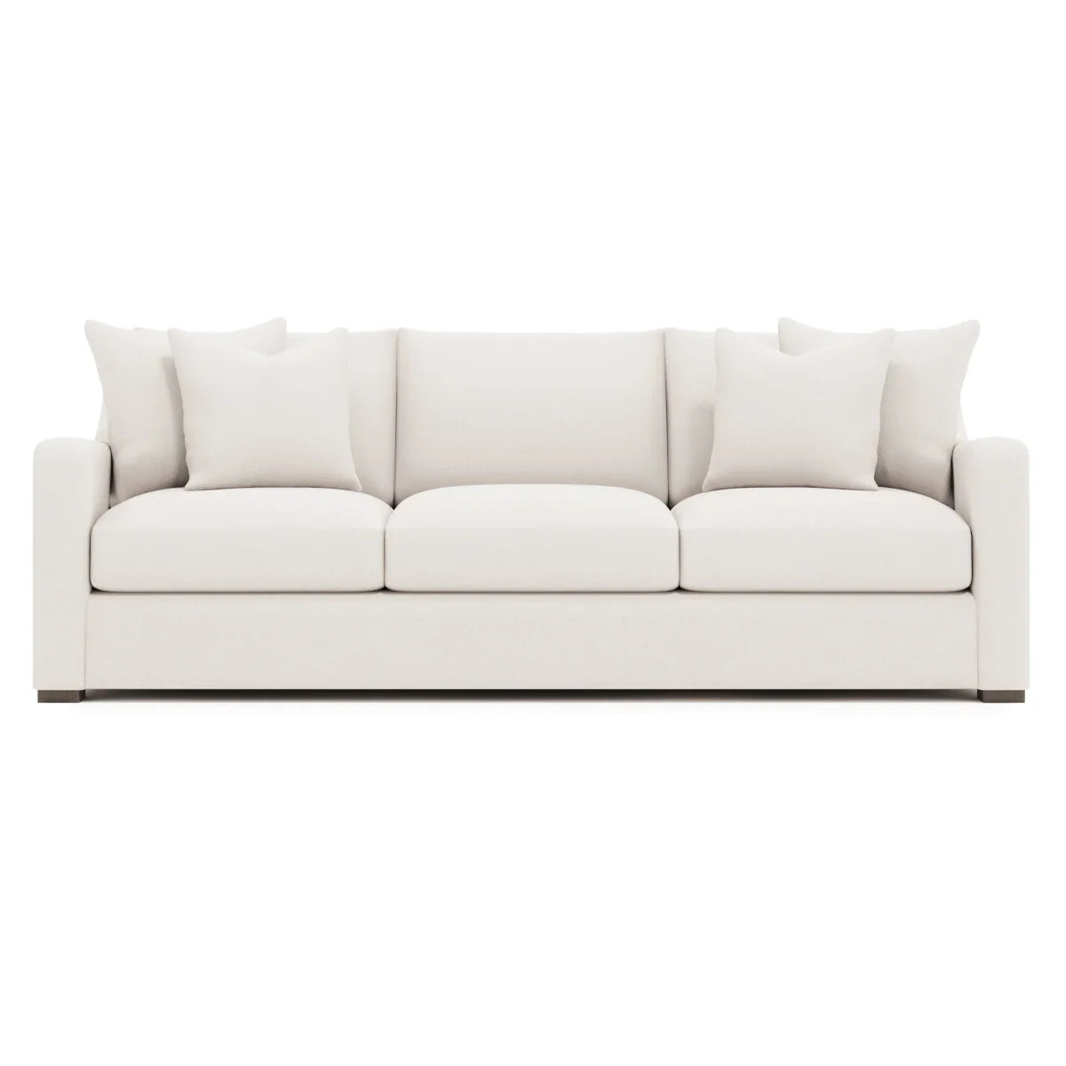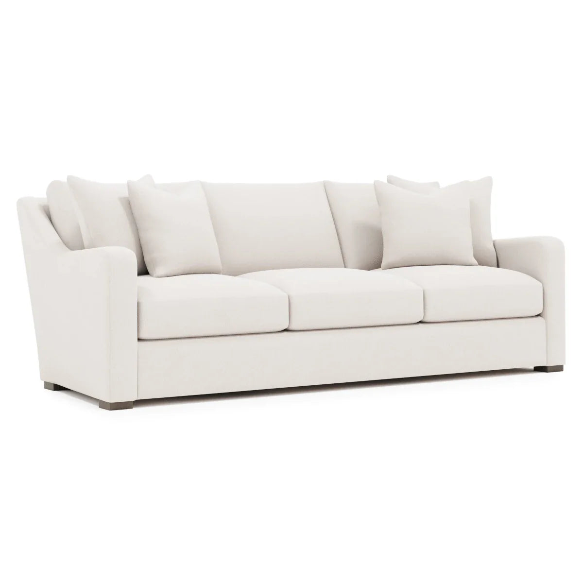 Le canapé Ventura allie lignes épurées et courbes élégantes, créant un subtil mélange de modernité et de tradition. Ses accoudoirs, partant d'un haut dossier, s'étirent en une ligne droite jusqu'au sol. Trois coussins d'assise profonds et des coussins de dossier à bordure carrée offrent un confort optimal.