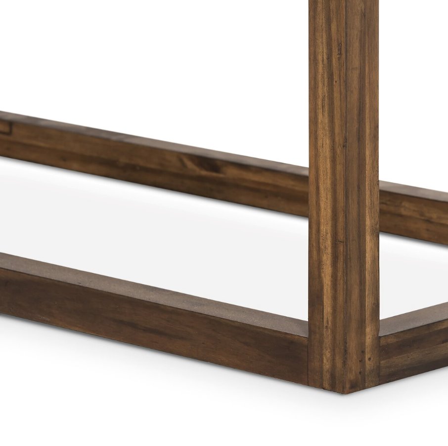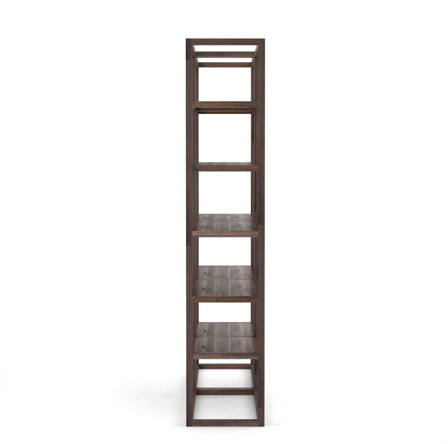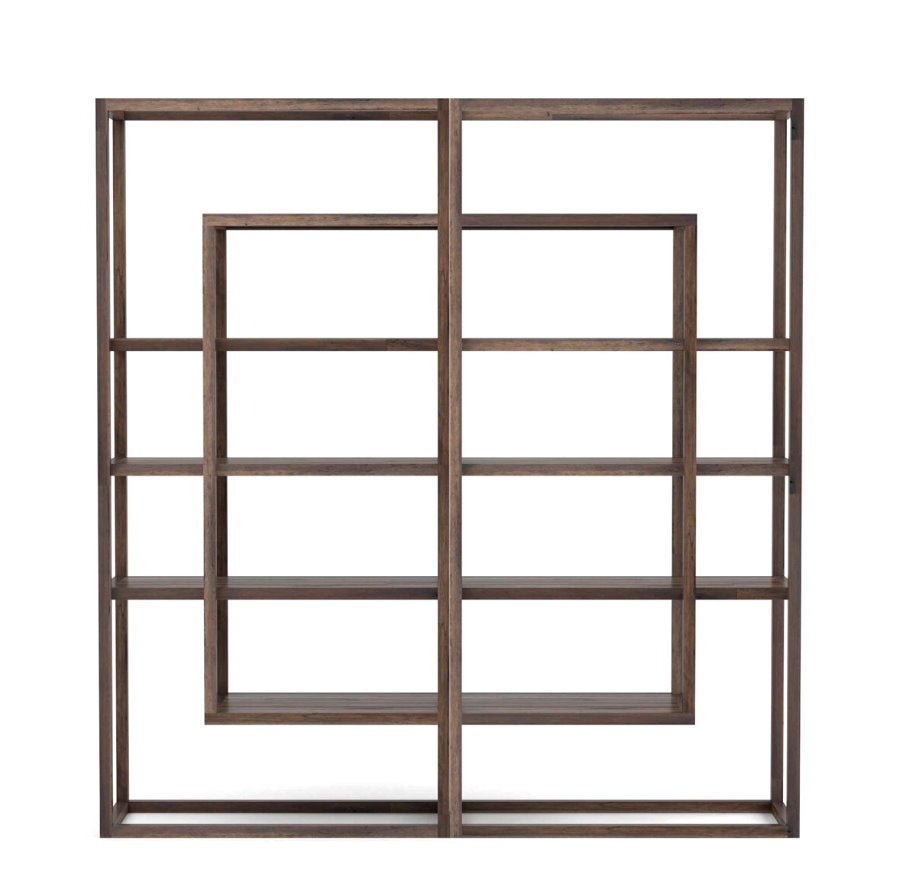 La bibliothèque Waylon présente un design inspiré des étagères, avec des éléments du milieu du siècle. Fabriquée en acacia massif et dotée d'une finition brun foncé, elle offre un espace de rangement généreux et ouvert.